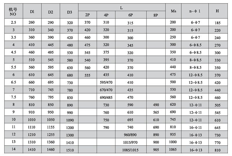 三、SWF-I系列混流式風機外形及安裝尺寸表